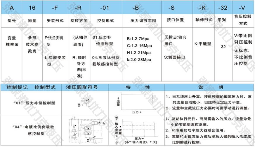 用于液壓開式回路的斜盤結(jié)構(gòu)軸向柱塞泵流量正比于驅(qū)動轉(zhuǎn)速和排量,并能通過調(diào)節(jié)斜盤傾角實現(xiàn)無級變量?!?1”型手動調(diào)節(jié),“04”型改變輸入電流調(diào)節(jié),有單獨的注油口和兩個泄油口供選擇,良好的吸入性能,低噪音,長壽命,節(jié)能特性明顯,反應(yīng)速度快,精度高。